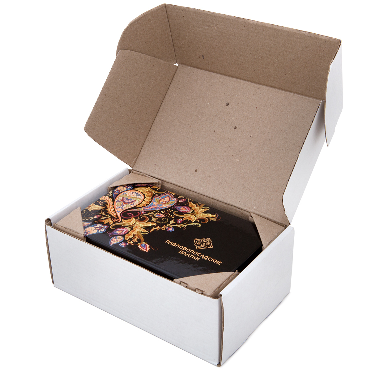 Павловопосадский платок – это уже сам по себе роскошный подарок, а когда он оформлен элегантно и со вкусом в подарочную упаковку, то становится еще более значимым, нарядным и праздничным!